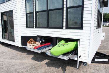 Smart interior storage solutions make the most of every inch — including built-in closets, and floor storage compartments. Perfect for keeping your living area organized and clutter-free. Outside, enjoy additional storage options perfect for outdoor gear, tools, or beach essentials — all while maintaining a clean, sleek exterior