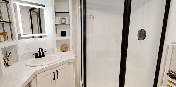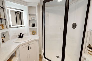Experience comfort and functionality in our beautifully designed one-bedroom mobile home — the perfect blend of modern living and efficient space use.. Clever built-in storage throughout the .keeps your space organized and clutter-free.