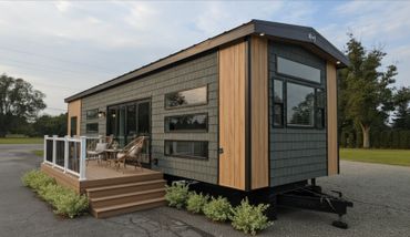Experience refined comfort in this compact yet luxurious mobile home, designed for those who value elegance, efficiency, and connection to nature. Despite its small footprint, every detail has been carefully crafted including a cozy modern faux fireplace to create a warm, inviting atmosphere that feels like home — close to the beach nested in Costa Rica's mountainous jungle.